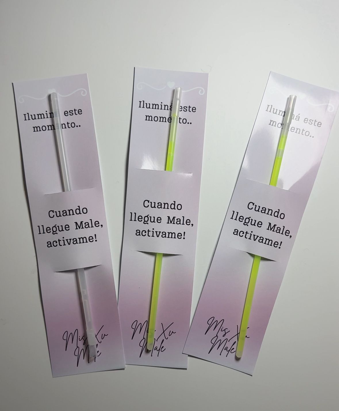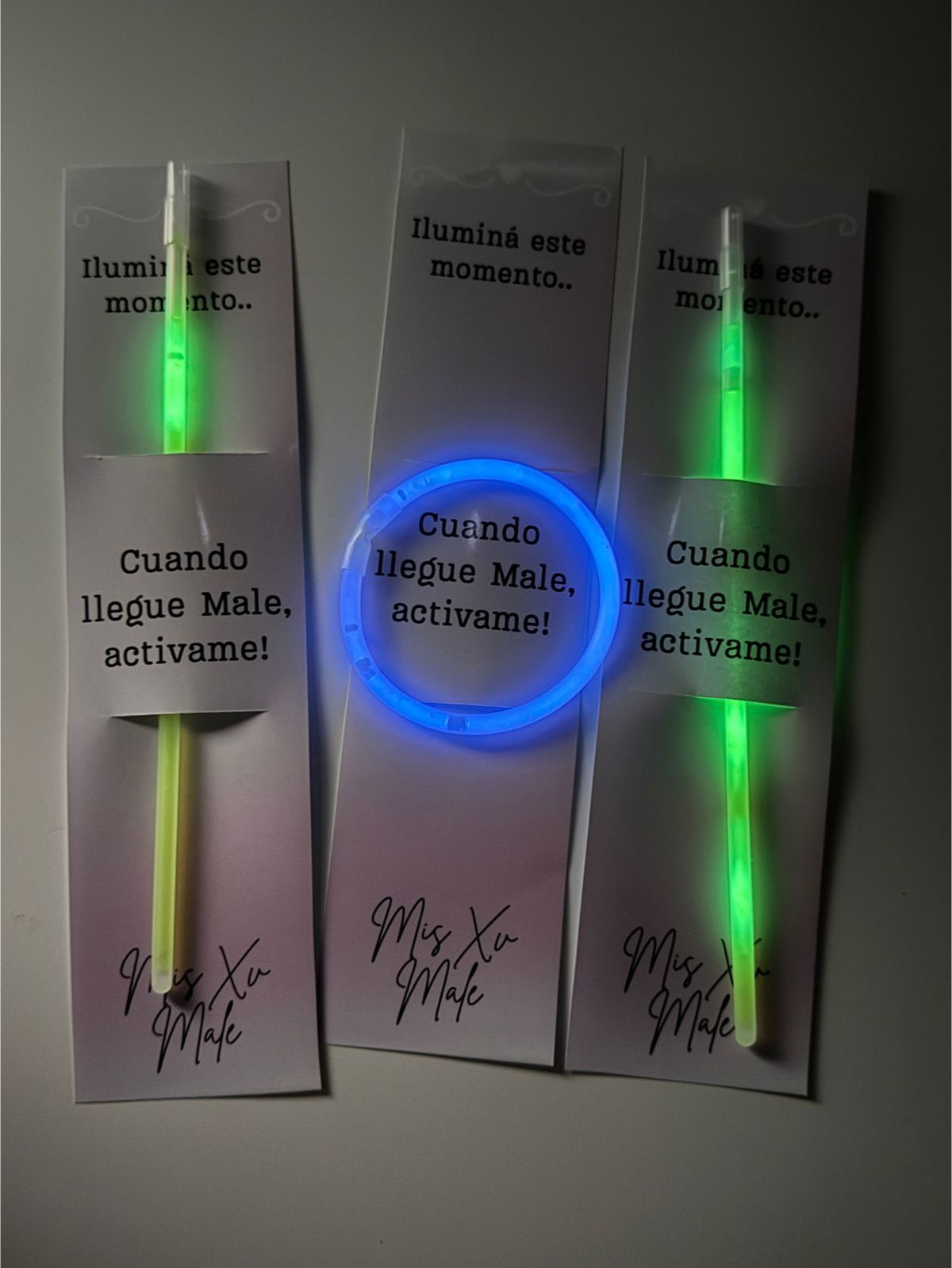 Sorprendé a tus invitados con estas pulseras fluor luminosas, presentadas en una tarjeta totalmente personalizada.