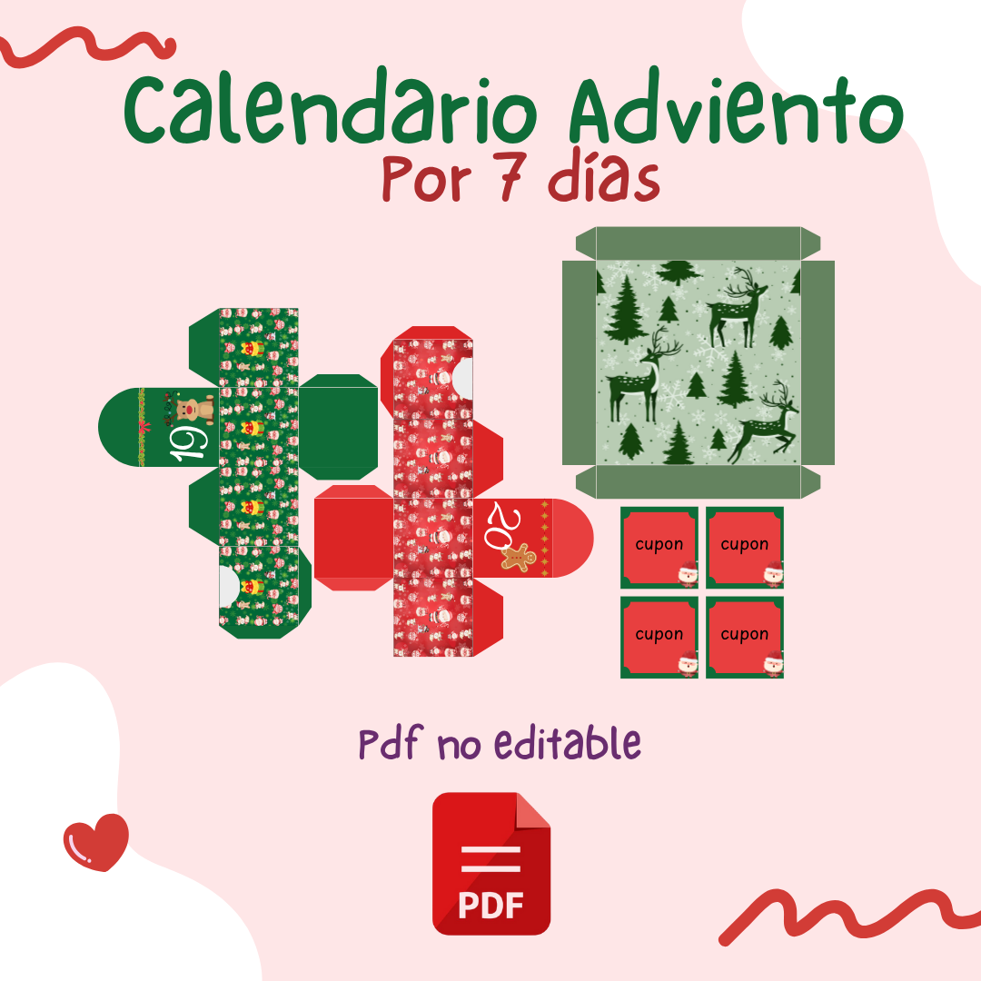🎄 Pack Calendario de Adviento 7 Días – Archivo PDF Listo para Imprimir ✨