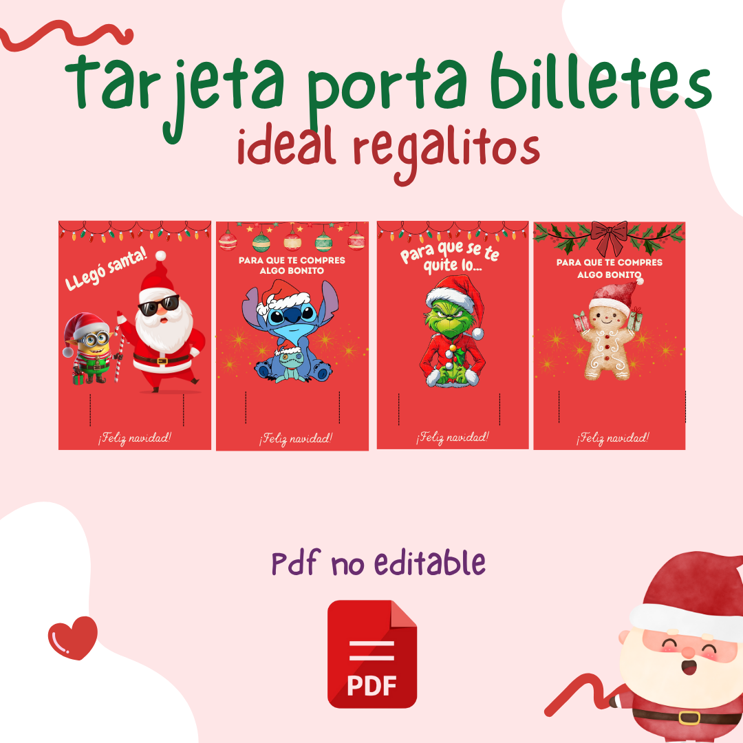 🎅 Pack Tarjetas Porta Billetes de Navidad – Archivo PDF Listo para Imprimir ✨