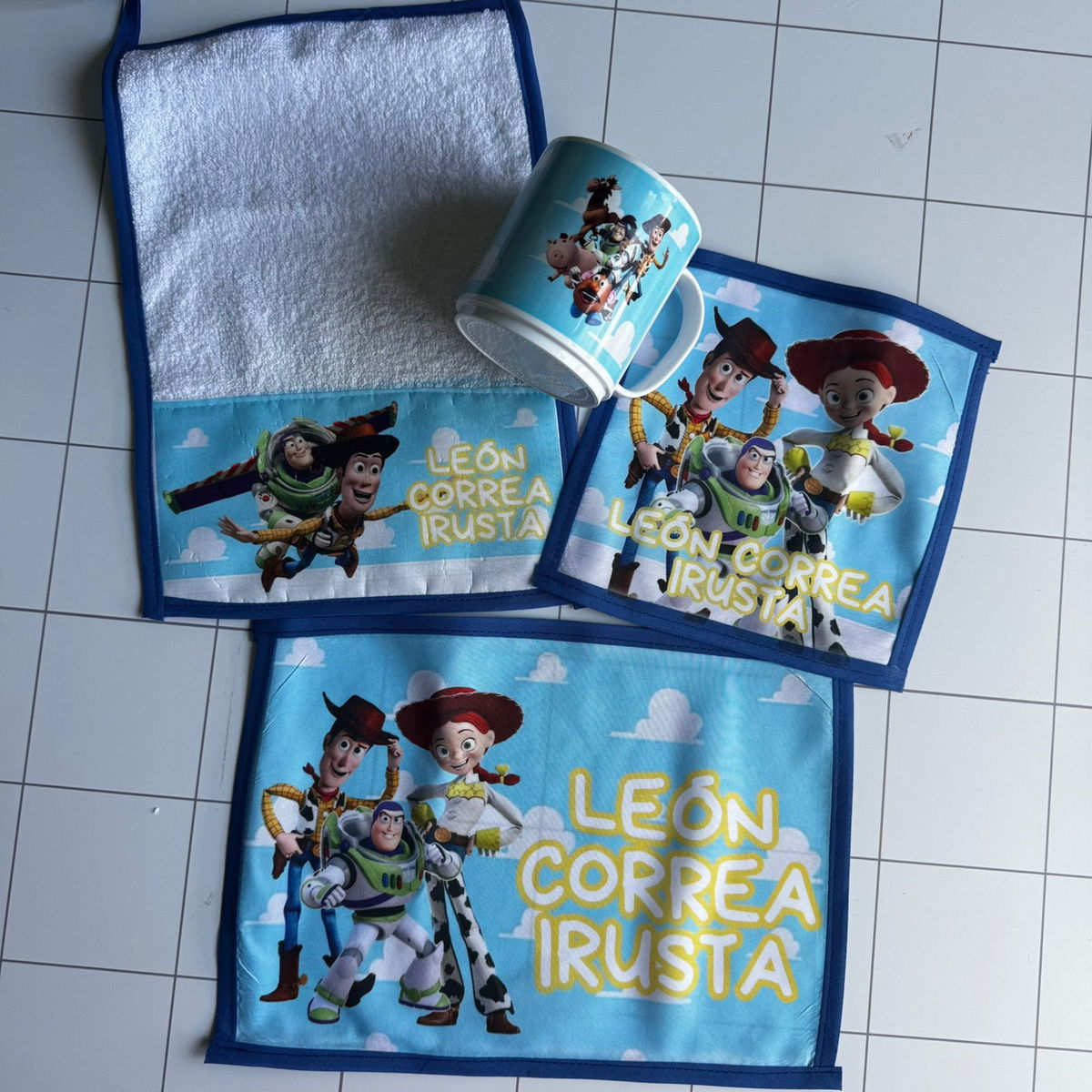 Toalla - mantel - servilleta y taza.