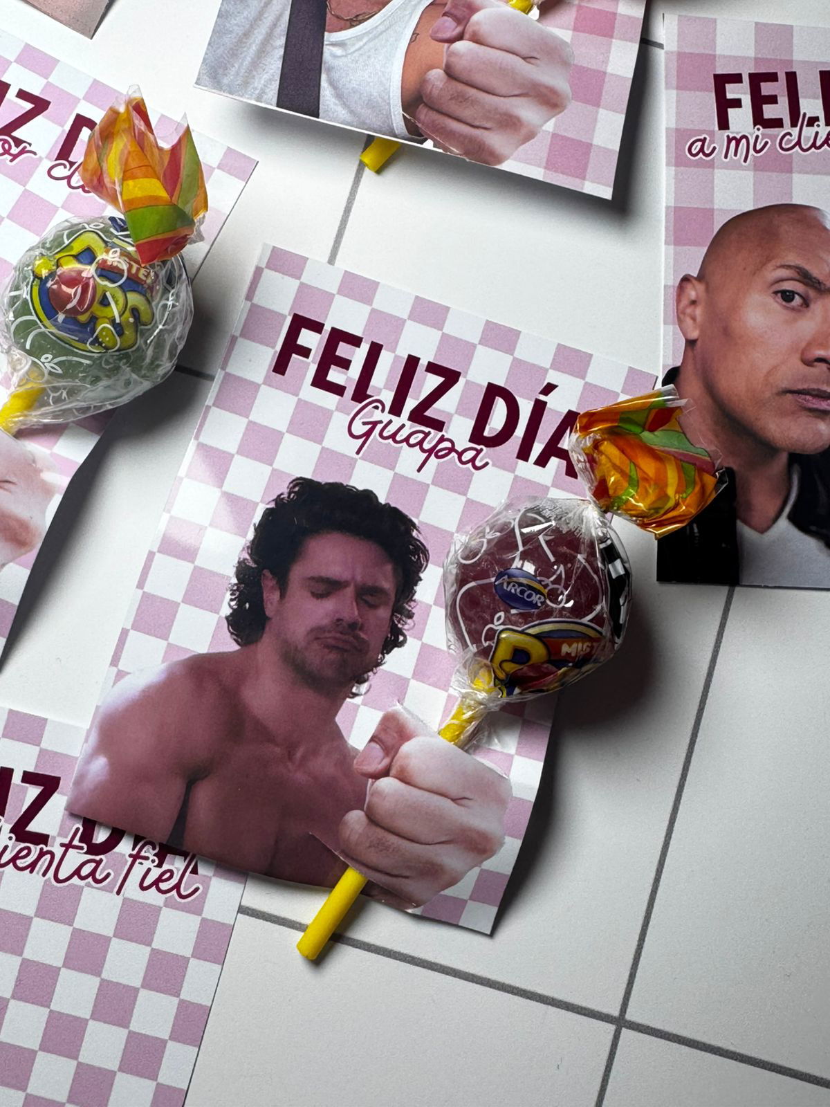 Chupetin y tarjeton! Los tarjetones vienen con 16 personajes diferentes.